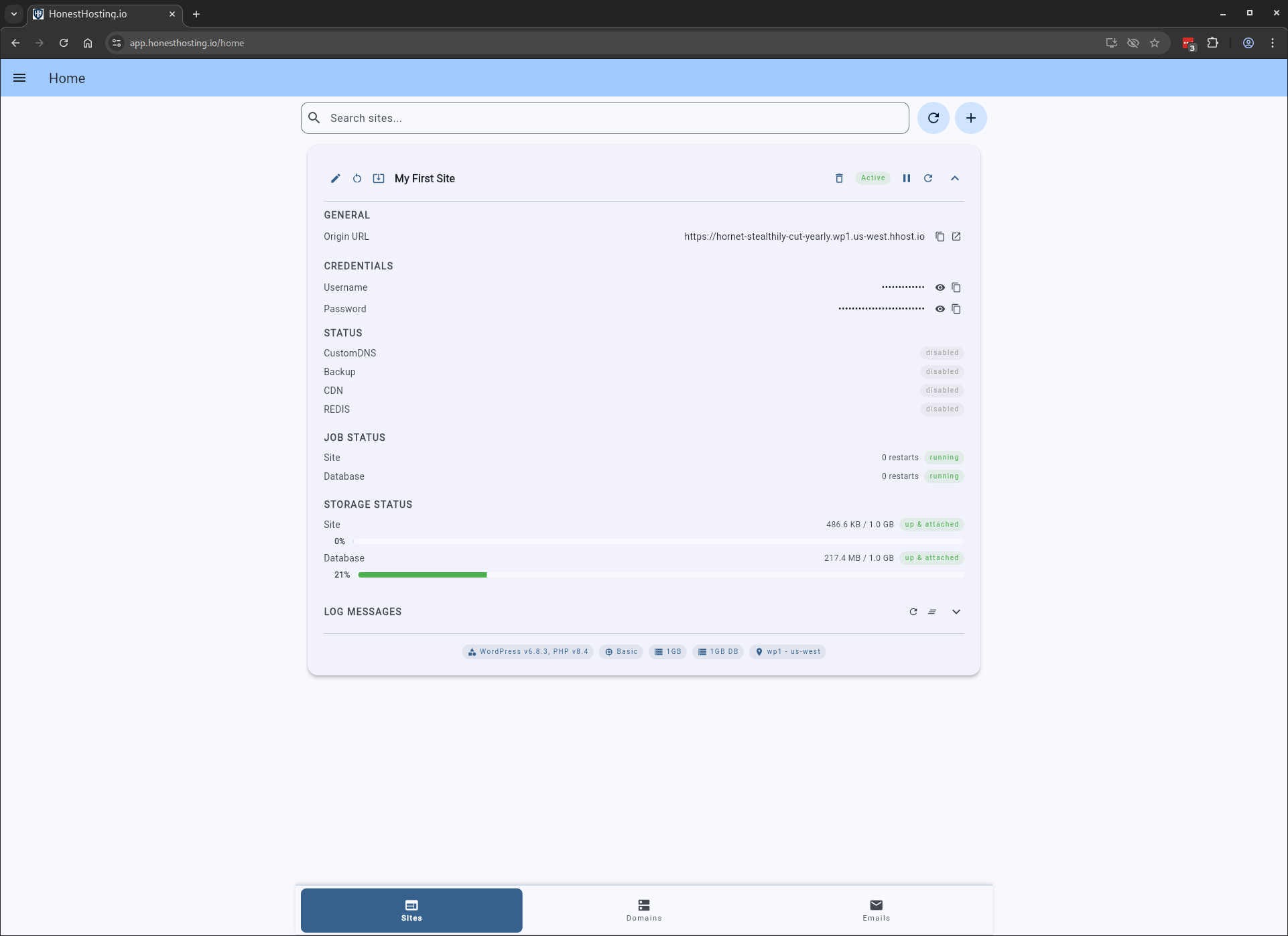 The Site will be created in about a minute, and you can edit it once it’s ready to update other settings.