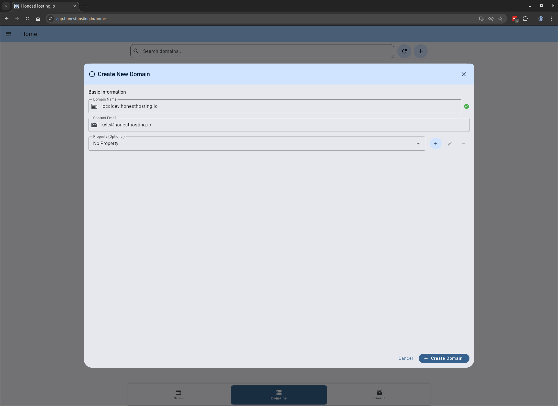 When setting up a Domain, specify basic information like the Domain and Contact Email.