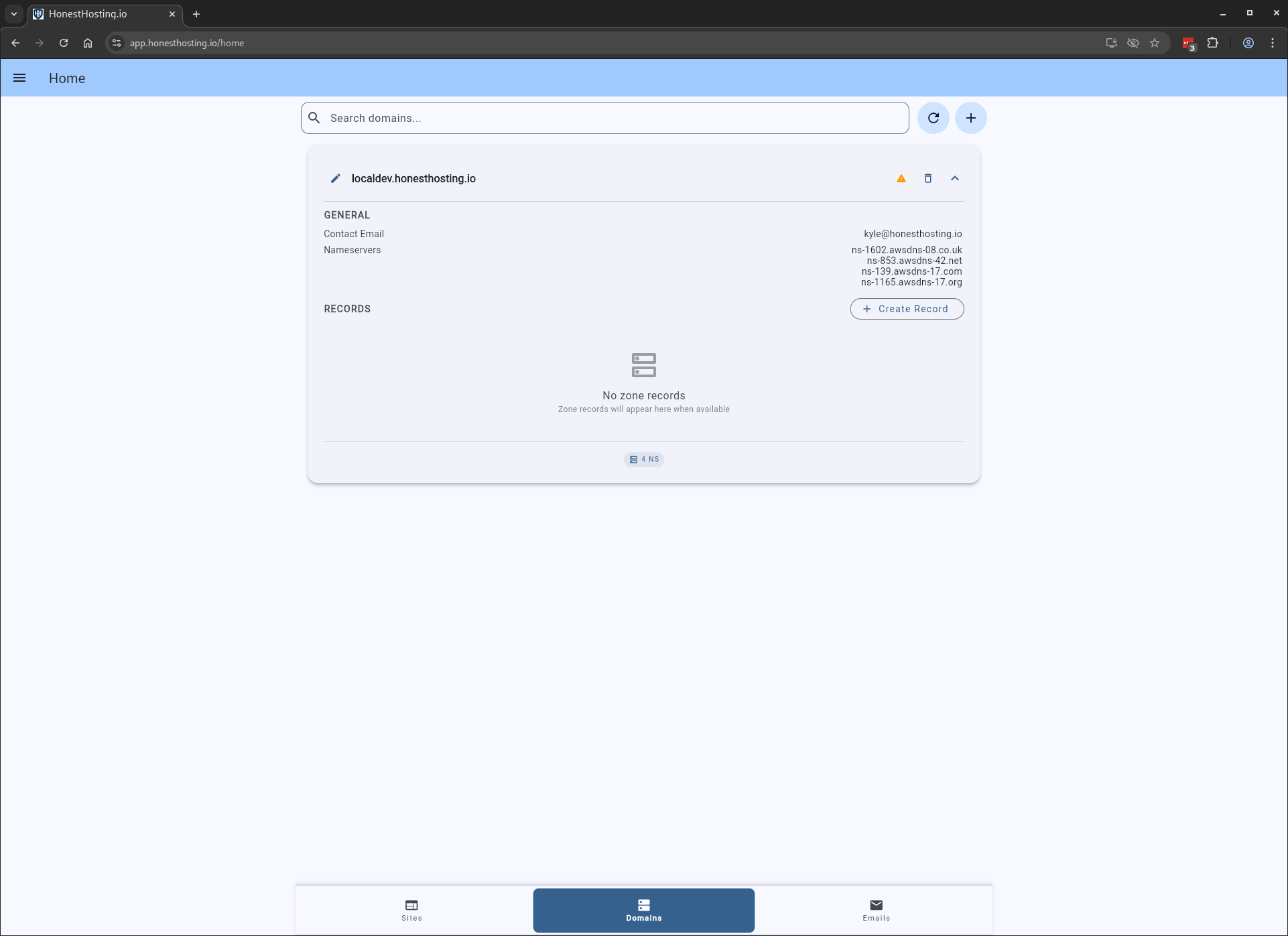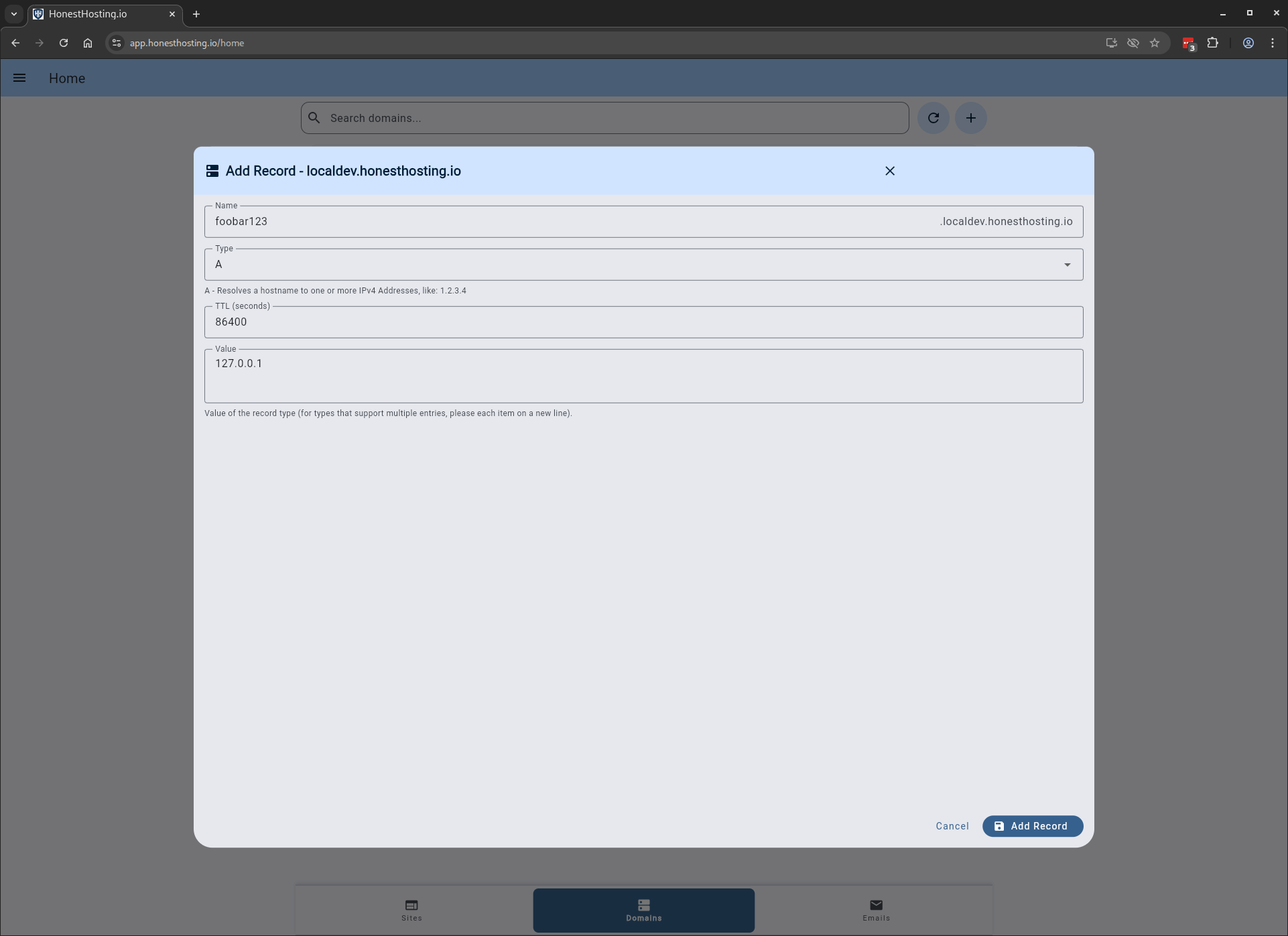 You can also add manual records by clicking Create Record and specifying the Name, Type, and other information.