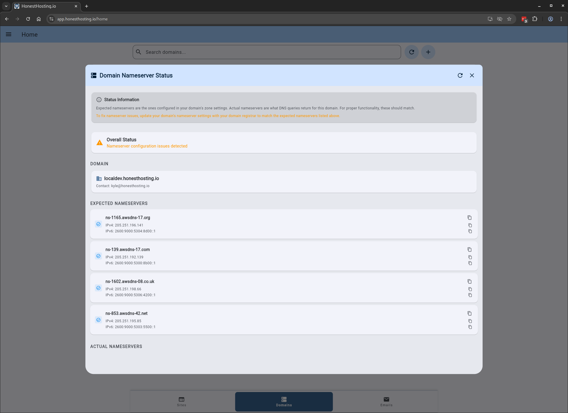 To view nameserver status in Public DNS, click on the icon to the left of the Trash icon, which will bring up